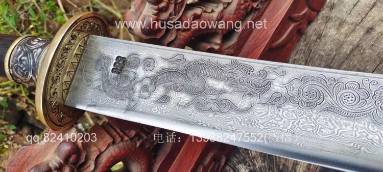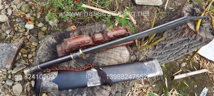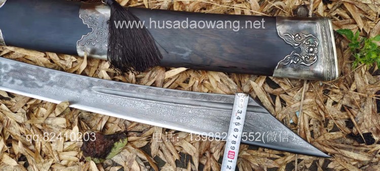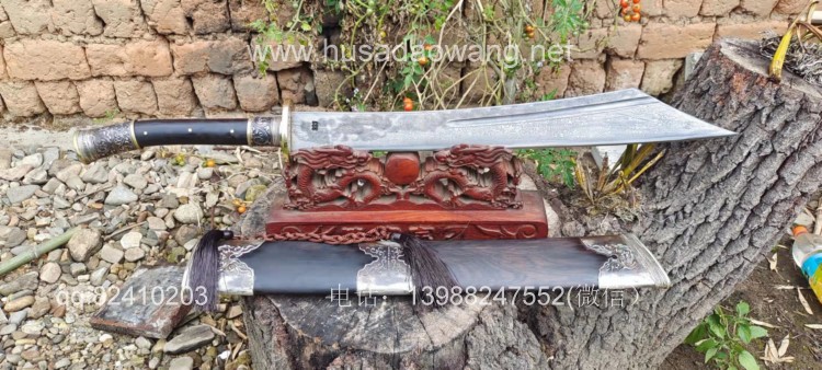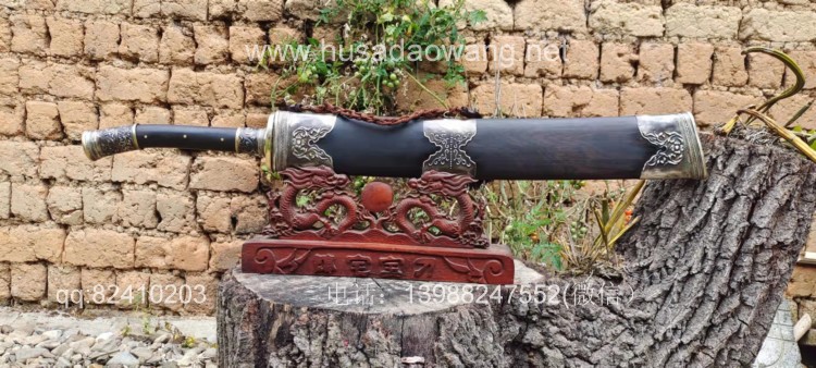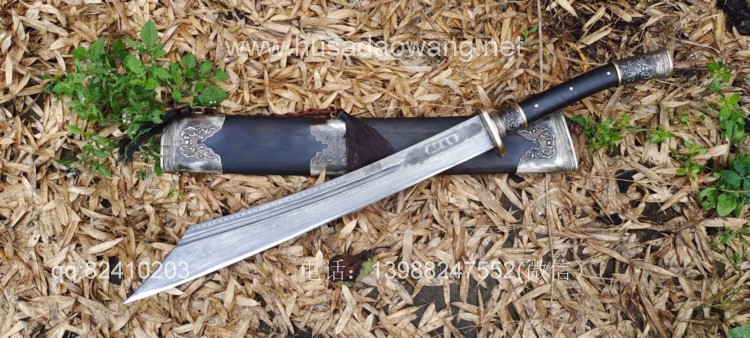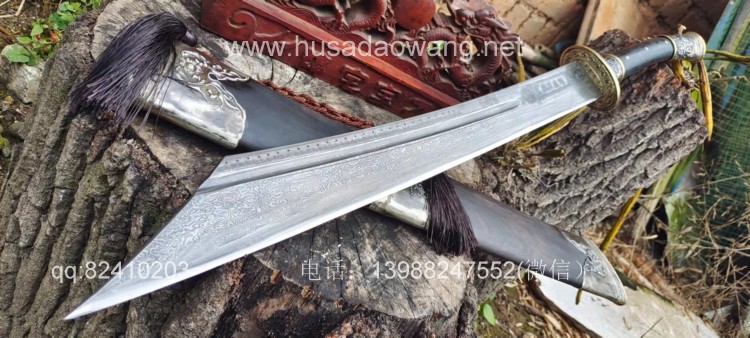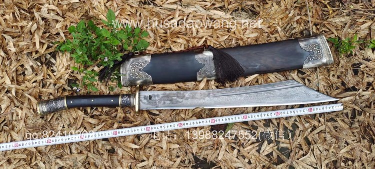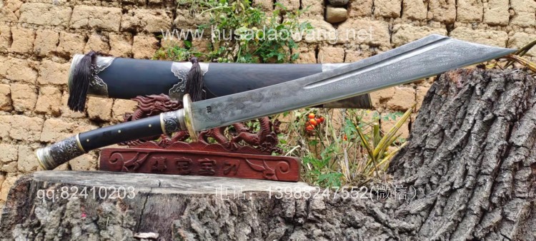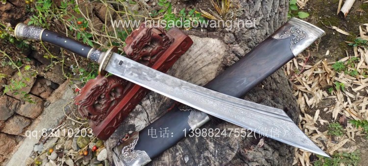 商品简介:这把刀由户撒刀迪派传人线乔发全手工锻造,刀条采用优质特硬百炼花纹钢手工锻打完成,线乔发独到的祖传淬火工艺让刀条刃口硬度极高并刚柔相济!粗锋砍断钢筋也不在话下!刀条形状为经典斩马刀形制,此刀为斩马刀加宽加大版本,更突出了刀的强悍威力!刀条的一体全龙骨设计让刀身强度大大加强,保证刀条在正常使用情况下永不断裂!刀鞘和刀柄为进口黑檀木手工制作,根据刀条形状刻刀槽,使得刀入鞘后不会晃动,也避免了由于松动而引起的刀使刀鞘受到损伤,刀鞘外部精包做旧缅银,使得此刀更显古朴大气!户撒刀收藏必不可少!