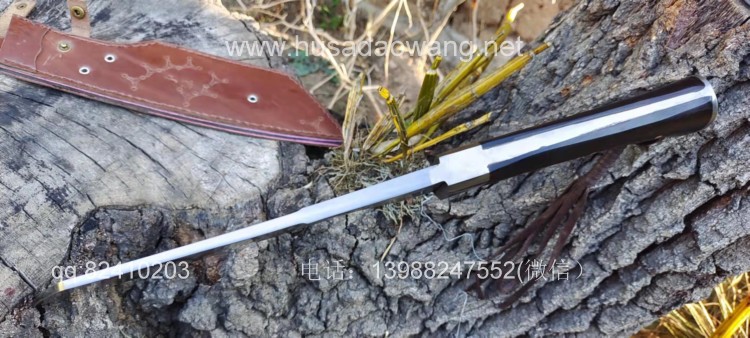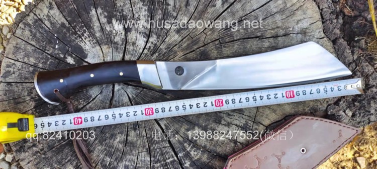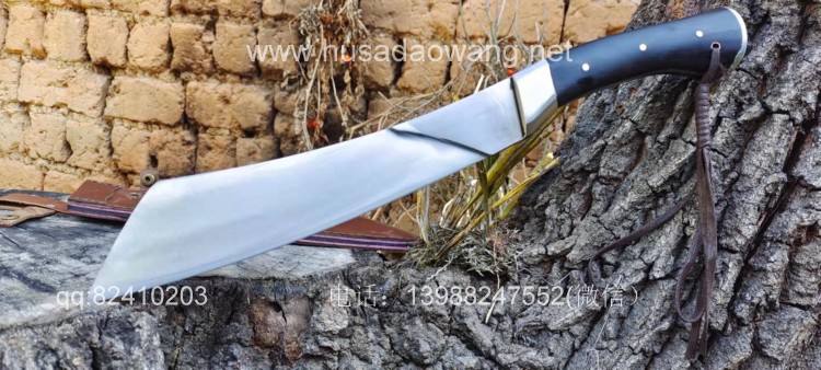 商品名称:户撒刀王(阿昌刀)精品帕兰砍刀 商品规格:刃长28厘米左右 全长44厘米左右 刃最宽处6厘米左右 商品简介:此刀采用优质高碳锰钢全手工锻打而成,刀型采用大名鼎鼎的户外名刀帕兰刀款式,此刀重心靠前,劈砍有力,切握感舒适!一体全龙骨刀身,刃口刚柔相济粗锋砍铁不伤,细锋轻松过竹,是户外不可多得的一把开路砍刀!这把刀做工精细,性能超强,户外爱好者不可错过!