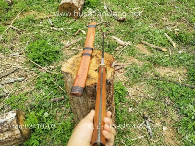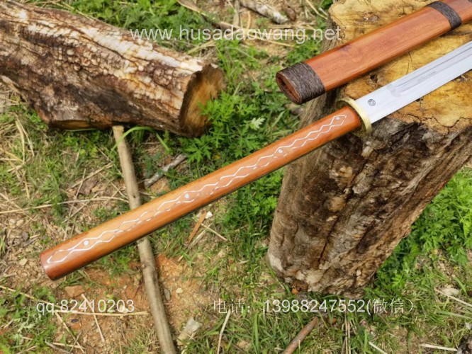 商品简介:此斩马刀为户撒刀王项老赛大徒弟精选高碳锰钢全手工锻打而成,刀型为刀中之霸斩马刀造型,一体全龙骨锻打刀条,结实耐用永不松动!刀条线条流畅,刃口刚柔相济,砍铁不伤!刀鞘刀柄为优质红酸枝手工制作,刀柄增加户撒工艺中非常独特的镶丝工艺,显得更加具有民族特色,并且更加精美!欢迎大家定做收藏!