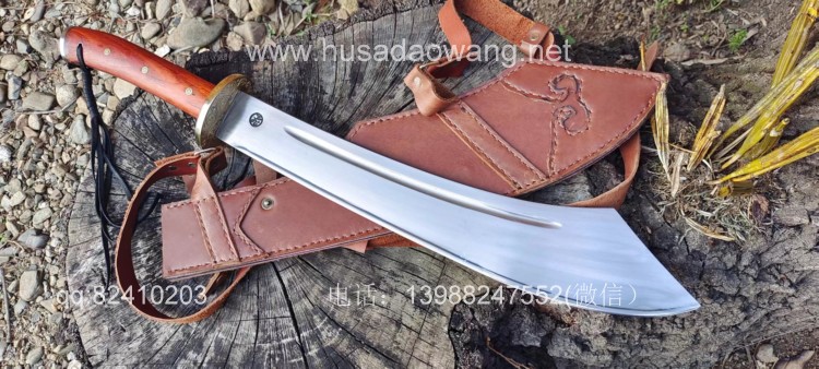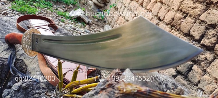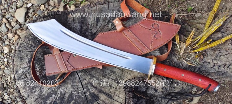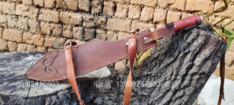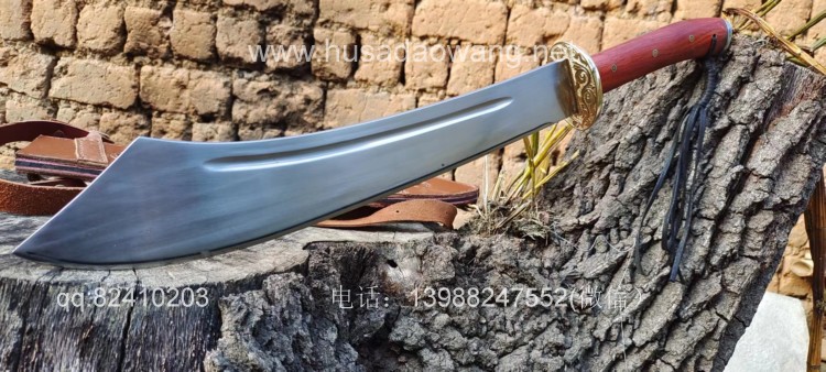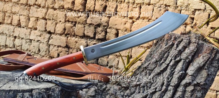 商品名称:户撒阿昌刀精品全龙骨中型红军砍刀 商品规格:刃长42厘米左右 全长64厘米左右 最宽处8厘米左右 商品简介:此刀为户撒优秀刀匠精选军用车弹簧板手工锻打而成,刀型款式为当年红军抗日砍刀的基本造型,刀型相当流畅霸气,加之一体全龙骨刀身,使得此刀看起来紧凑而无坚不摧!刃口经过匠人的反复锻打并配方淬火后坚硬而具有韧性,粗锋可以砍钢筋,细锋轻松过竹,实用性极强,刀鞘采用高档牛皮精心手工缝制,一体搭配非常协调便携!喜欢历史和收藏的朋友请联系定制! 微信:13988247552