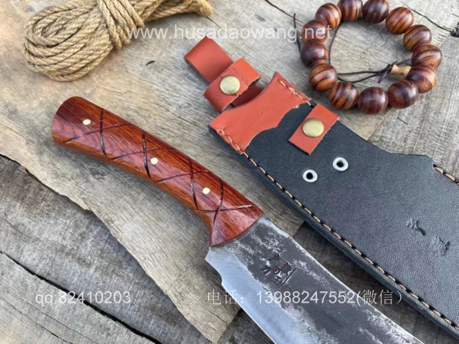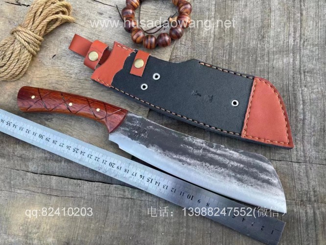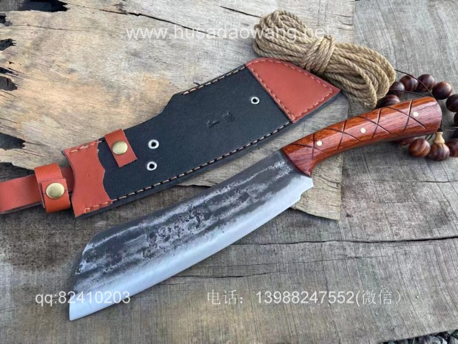 商品名称:户撒阿昌刀王精品户外全龙骨小砍刀 商品规格:刃长20厘米左右 全长35厘米左右 宽度4.7厘米左右 厚度0.9厘米左右 商品简介:此款刀为优秀匠人采用轨道钢手工锻打而成,轨道钢经过手工锻打和淬火后性能极好,斩铁截钉不在话下,此刀长短和配重设计转为户外客户量身定做,刀身颜色为锻打黑色,户外不反光也能增加防锈能力,此款小砍刀为优质促销产品,大家抓紧时间购买! 微信:13988247552