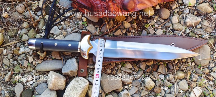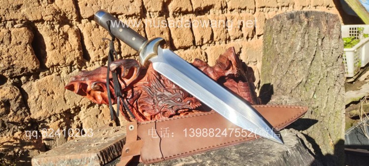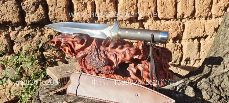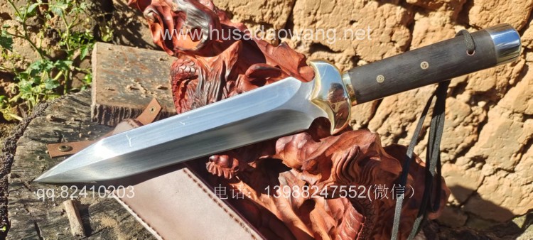 商品名称:户撒刀王(阿昌刀)精品一体全龙骨短剑 商品规格:刃长28厘米左右 全长45厘米左右 商品简介:短剑采用性能极好的户撒红钢全手工锻打,一体全龙骨剑身,刀身千锤百炼后淬火而成,性能非常强悍,轻松砍铁,而且穿刺能力极佳,穿铁皮桶根本不用使劲,护手为实心纯铜纯手工磨制,整体做工效果非常精细紧致,尾端带击锤,户外做锤击使用,配高档手工缝制的牛皮刀鞘,收藏、实用、户外一体的好剑!