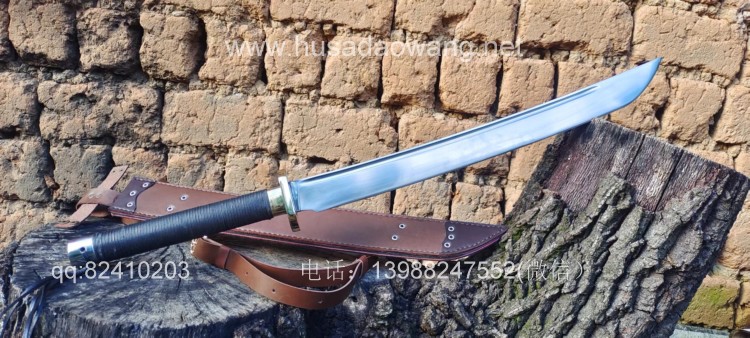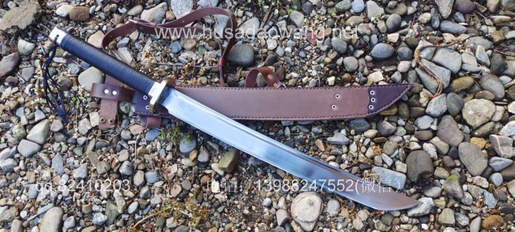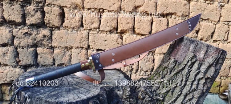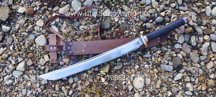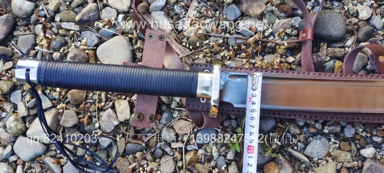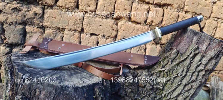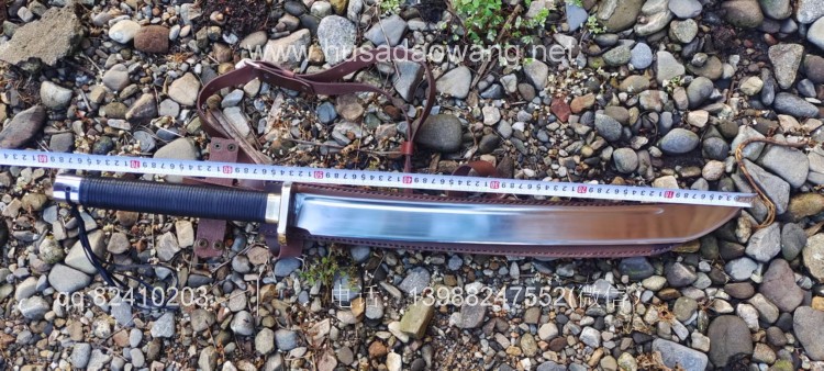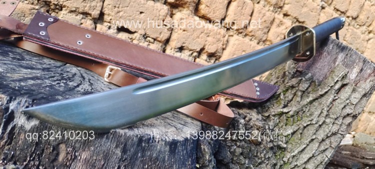 商品名称:户撒阿昌刀精品实战全龙骨马刀 商品规格:刃长53厘米左右 全长78厘米左右 厚度8毫米左右 商品简介:此马刀为户撒优秀刀匠全手工锻造的精品实战马刀,刀条采用户撒高性能红钢精心锻造配方淬火而成,刀条为传统马刀制式,刀条线条优美,极为适合劈砍,户撒独特淬火后刃口硬度非常高,斩铁截钉不在话下,此马刀造型设计非常科学,显得异常紧凑!一体全龙骨刀条耐用坚固,正常使用永不损毁!护手为实心黄铜手工制作打磨,厚实美观,刀鞘为上等牛皮手工缝制,带有背带,适合上山防身~!