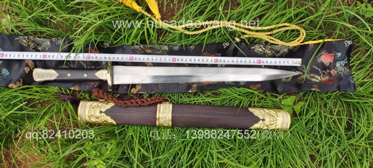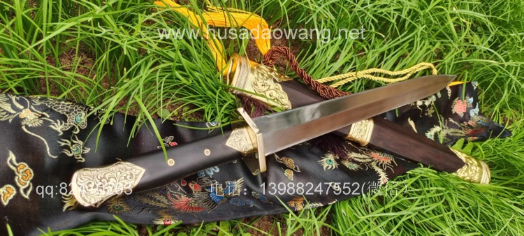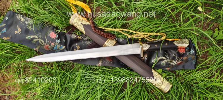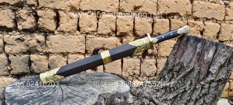 商品名称:户撒阿昌刀王精品户外宝剑 商品规格:刃长44厘米左右 全长62厘米左右 宽度4.2厘米左右 商品简介:这款精品宝剑剑身采用户撒高性能红钢全手工锻造,配方热处理而成,造型为经典四面剑,流畅剑身美观大方,剑身宽厚性能超强,轻松砍铁砍钢筋!剑体一体全龙骨锻造,极为结实耐用,剑柄永不断裂,护手和尾端为实心纯铜手工雕刻而成,非常精细古朴,剑鞘为上等黑檀木外包黄铜件加固古香古色韵味深长!这款剑即可装饰办公室和家里镇宅,又可户外劈砍使用,收藏实用佳品!