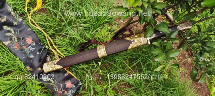 商品简介:这款精品宝剑剑身采用户撒高性能红钢全手工锻造,配方热处理而成,造型为经典四面剑,流畅剑身美观大方,剑身宽厚性能超强,轻松砍铁砍钢筋!剑体一体全龙骨锻造,极为结实耐用,剑柄永不断裂,护手和尾端为实心纯铜手工雕刻而成,非常精细古朴,剑鞘为上等黑檀木外包黄铜件加固古香古色韵味深长!这款剑即可装饰办公室和家里镇宅,又可户外劈砍使用,收藏实用佳品!