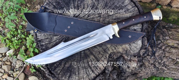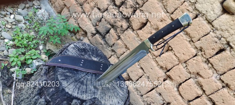 商品名称:户撒刀王大威力开路先锋砍刀 商品规格:刃长41厘米左右 全长61厘米左右 刃厚8毫米左右 商品简介:给客户定做的户撒开路先锋砍刀测试视频!一体全龙骨结构,刀型犀利刚 劲性能极佳!客户不让测试砍铁所以只测试了砍树枝,轻轻一挥树枝应声而断!刀尖 厚实开有假刃,因此穿刺能力强,手感舒适配重合理,属于重型开路刀,刃长41厘米 左右 ,62厘米左右 ,重量大概四斤半左右 联系定做可加V:13988247552