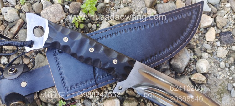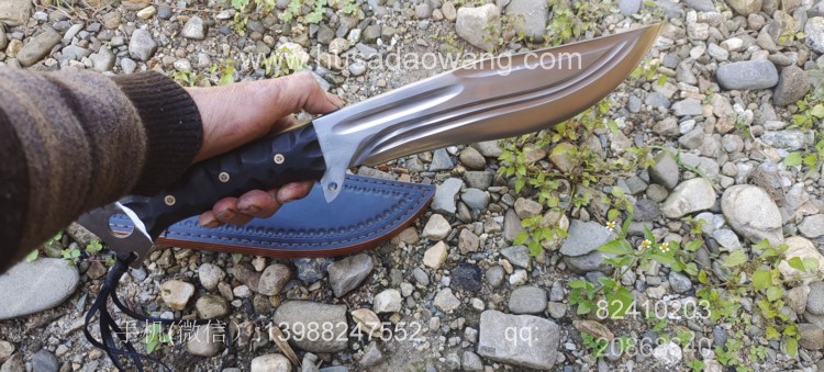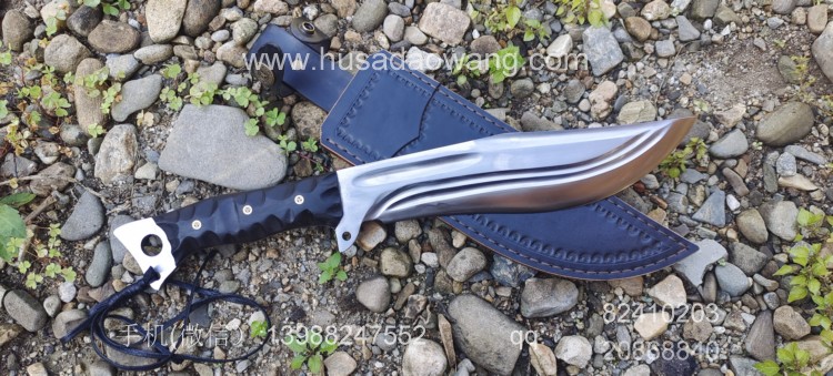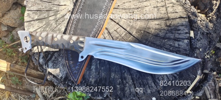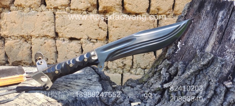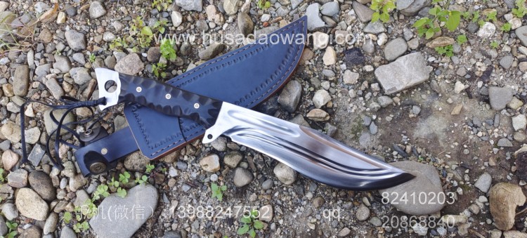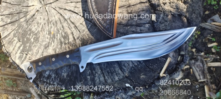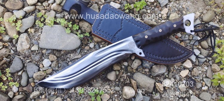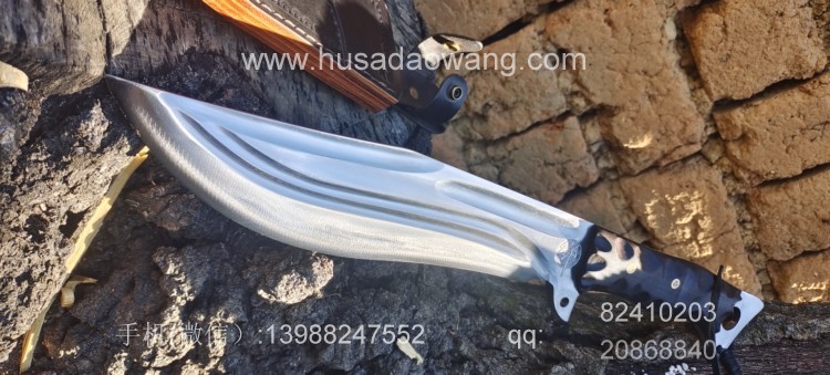 商品名称:户撒刀王(阿昌刀)巴斯掠夺者 商品规格:刃长25厘米左右 全长42厘米左右 厚度7毫米左右 商品简介:给客户订做的巴斯掠夺者!优质红钢手工锻打,美国著名户外刀款式,原品市场价格约为8500元人民币,按照客户要求采用我们户撒纯手工锻打工艺,880元定制,性能极佳!砍铁削纸不在话下!此刀刀型独特重心偏向刀头方向,因此户外劈砍性能一流,刃长25厘米左右 全长42厘米左右,手柄采用优质黑檀木,手工磨防滑凹槽,手感出众! 需要定做请加V:13988247552