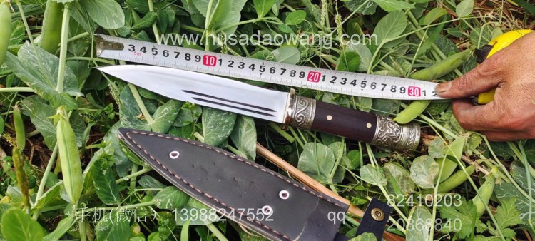 商品名称:户撒阿昌刀手工锻打藏式短刀 商品规格:刃长18厘米左右 全长31厘米左右 厚度6毫米左右 商品简介:这款刀刀条按照传统藏刀款式锻打,继承了藏刀穿刺劈砍的优良款式性能,同时刀条一体全龙骨锻造,又加固了原藏刀刀尾细小的不足,而且手感更加舒适,刀条性能极佳,削纸砍铁,手柄装饰缅银配件更让这款刀更具美感!这款刀一经推出爱好者云集,订单络绎不绝,欢迎大家前来定制! 定制咨询请加微信:13988247552