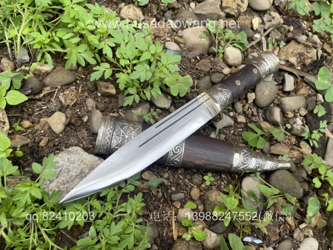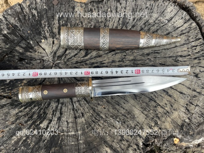 商品名称:户撒阿昌刀精品木鞘藏式短刀 商品规格:刃长18厘米左右 全长32厘米左右 厚度6毫米左右 商品简介:极为受欢迎藏式短刀,这款刀一经推出深受广大粉丝和客户喜欢,定做者络绎不绝,户撒纯手工锻打制作,锋利如丝,正宗户撒传承锻打工艺,老军用解放弹簧板手工锻打配方淬火而成,刀条采用客户提供的藏式刀条原图制作,锻打完后三道表面抛光处理,非常锋利! 联系微信:13988247552