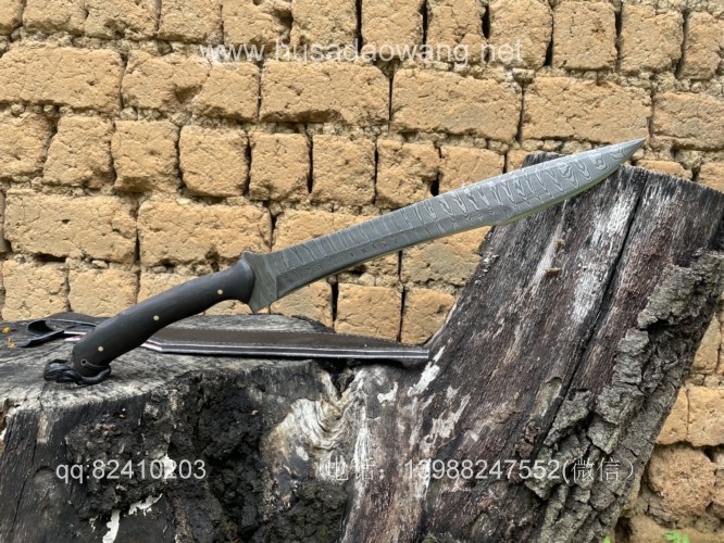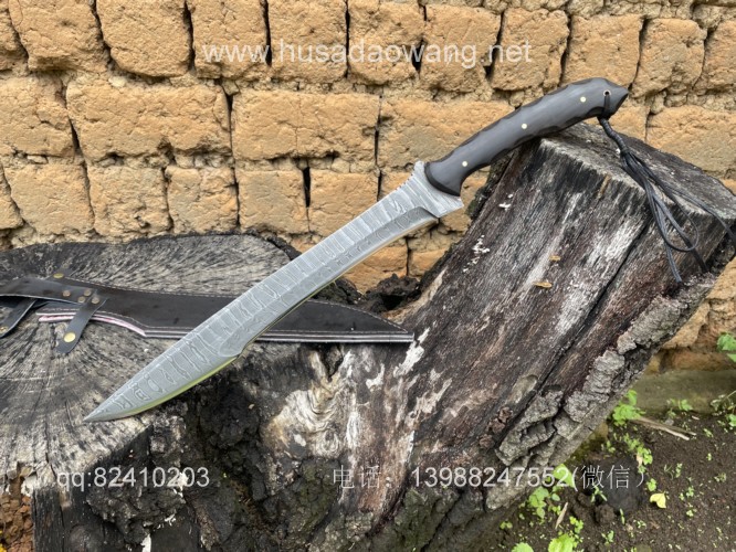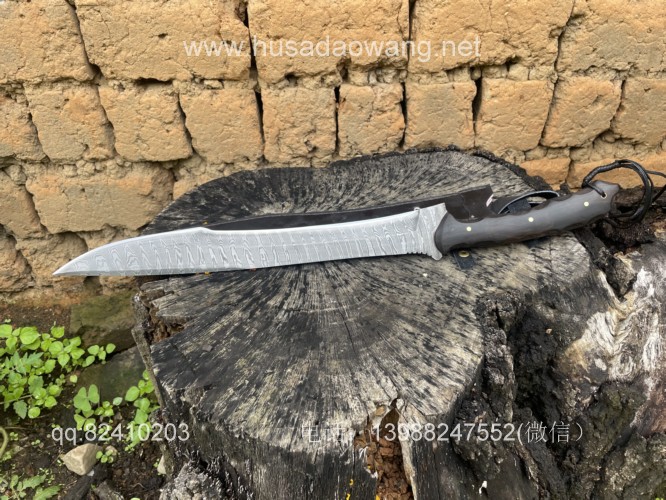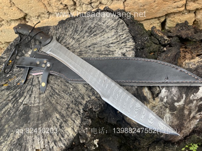 商品简介:给客户订做的松田菊男银龙!扭转纹大马士革手工锻打,松田菊男的刀设计在世界上是非常有名的,每一把刀型都堪称经典。这把刀采用扭转纹大马士革刚手工锻打,刃长41厘米左右 全长59厘米左右 刀型犀利顺畅,劈砍和穿刺力度都非常好,一体全龙骨设计,结实耐用!
