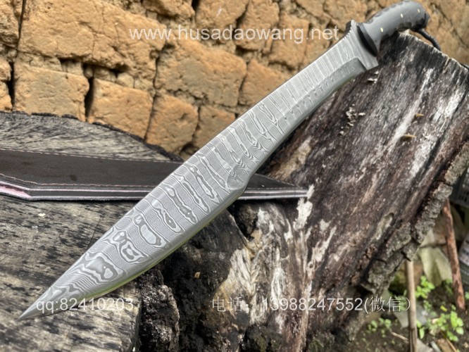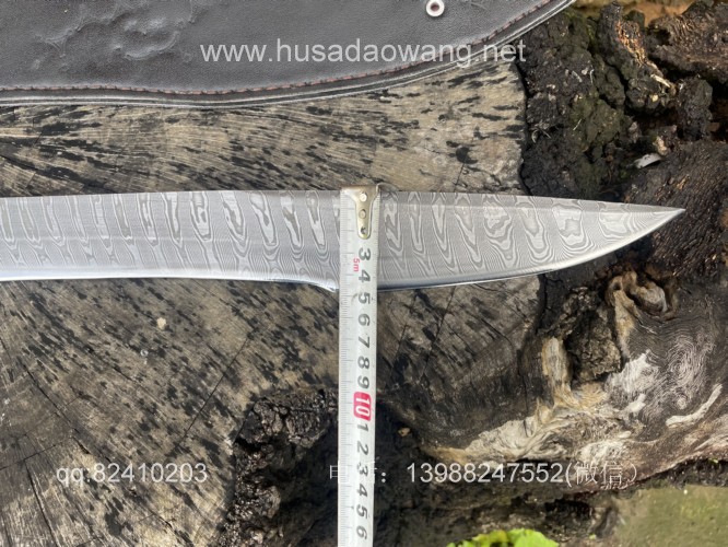 商品名称:户撒刀王(阿昌刀)手锻松田菊男银龙 商品规格:刃长40厘米左右 全长59厘米左右 厚度9毫米左右 商品简介:给客户订做的松田菊男银龙!扭转纹大马士革手工锻打,松田菊男的刀设计在世界上是非常有名的,每一把刀型都堪称经典。这把刀采用扭转纹大马士革刚手工锻打,刃长41厘米左右 全长59厘米左右 刀型犀利顺畅,劈砍和穿刺力度都非常好,一体全龙骨设计,结实耐用! 定做微信:13988247552