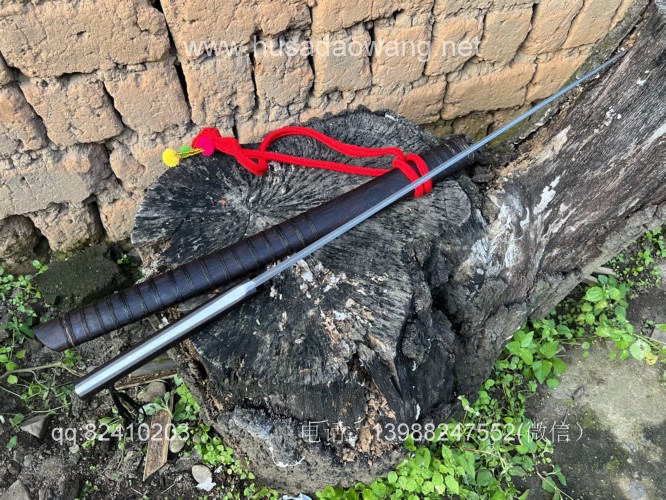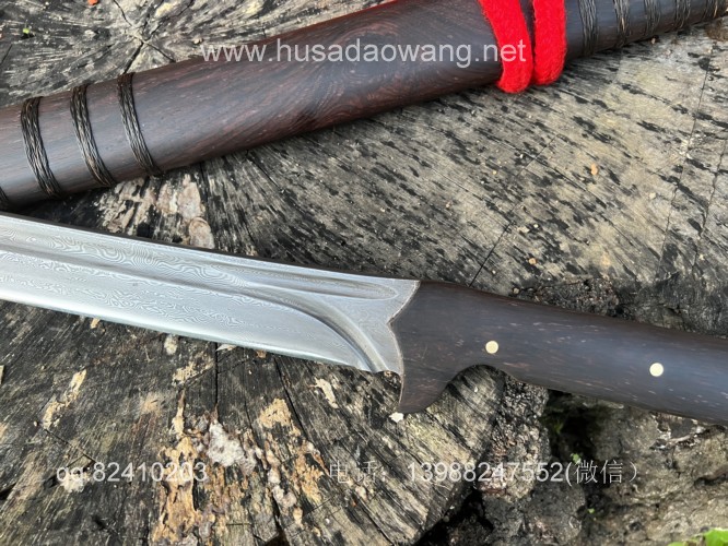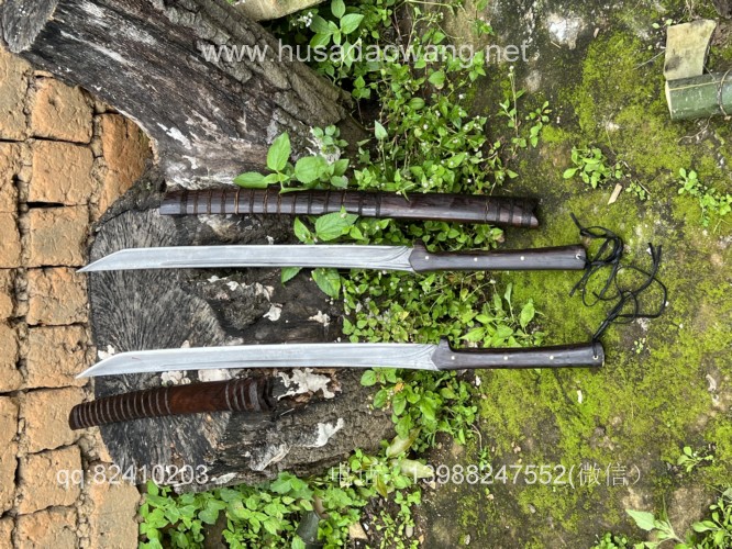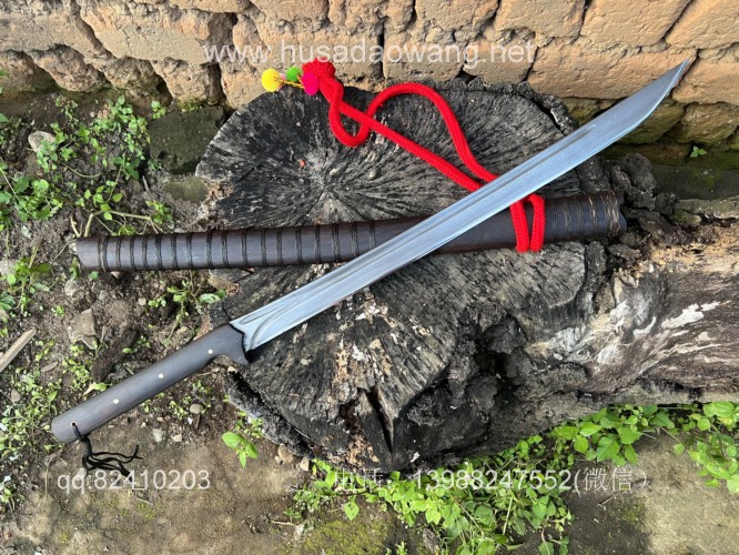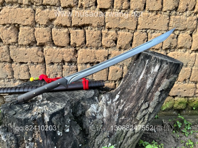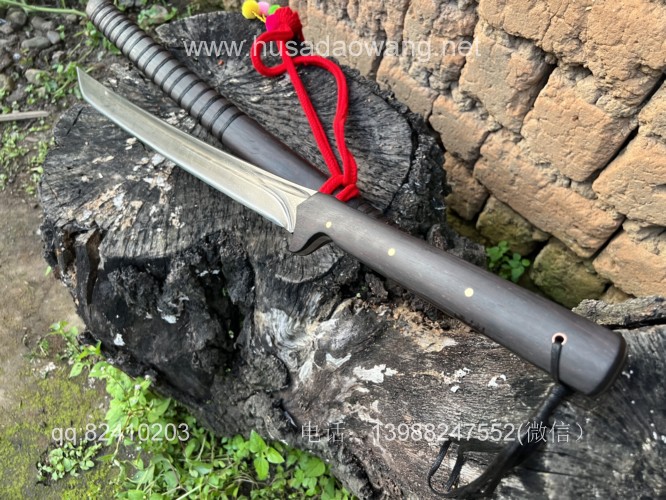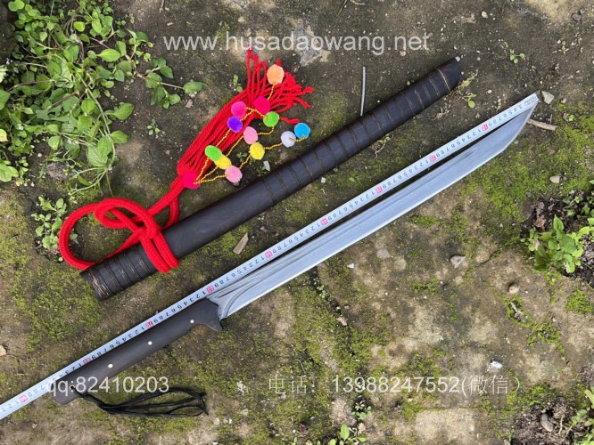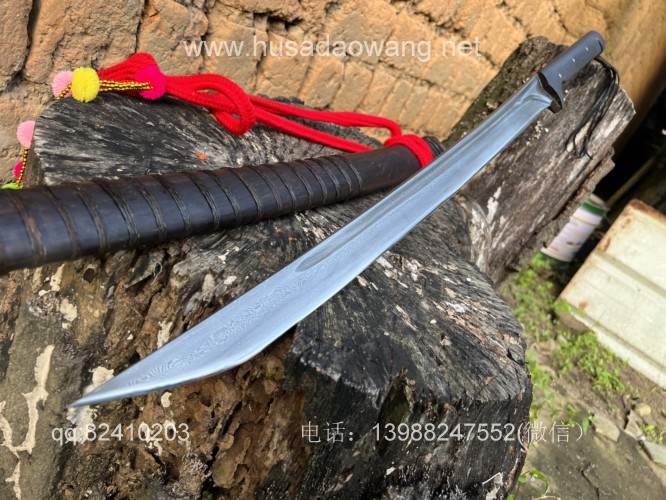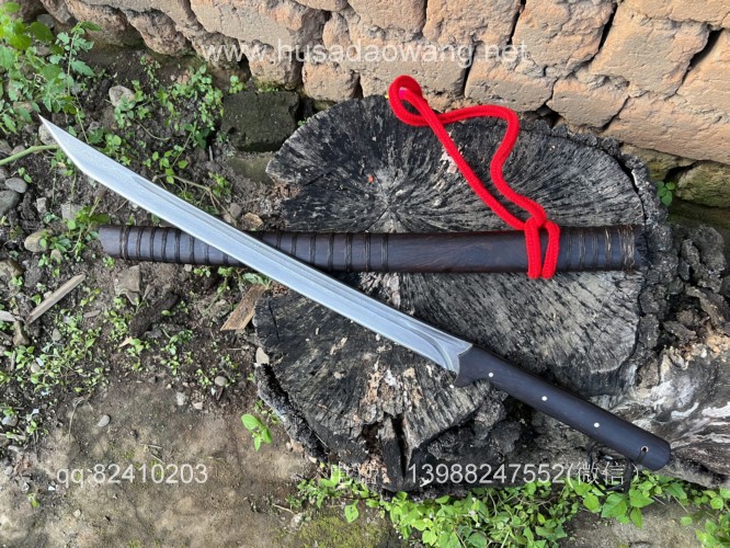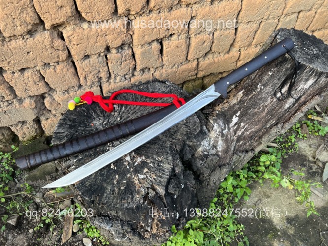 商品名称:户撒阿昌刀手锻百炼钢僵尸马刀 商品规格:刃长60厘米左右 全长86厘米左右 厚度8毫米左右 商品简介:这款刀是客户提供影视原型,一把僵尸马刀,刀条是百炼花纹钢一体全龙骨手工锻造结实耐用,这款刀流线优美非常养眼,刀条锻打淬火后性能极佳,削纸的情况下可以砍铁丝,配黑酸枝刀柄刀鞘,这款刀相对轻便,方便携带,平时锻炼和户外都非常给力! 定制微信:13988247552