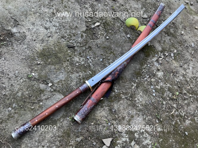 商品名称:户撒阿昌刀精品超长平头刀(杨茂方制) 商品规格:刃长110厘米左右 全长152厘米左右 宽度3.8厘米左右 厚度9毫米左右 商品简介:根据客户定制的精品超长平头刀,户撒刀一流匠人杨茂方手工锻造,一体龙骨锻打,刀身超长威力强大,刀柄刀鞘为缅甸优质红酸枝木手工制作,外包缅银而成,经典收藏使用冷兵器! 户撒刀联系微信:13988247552