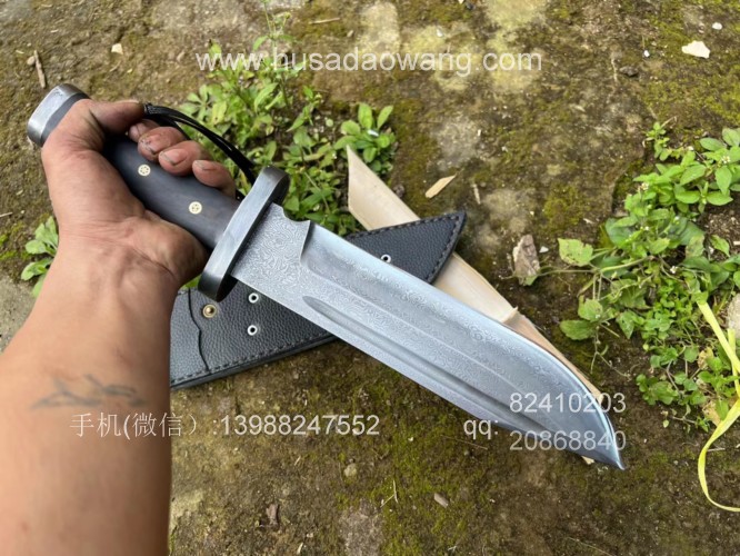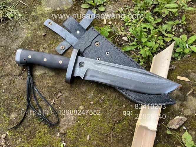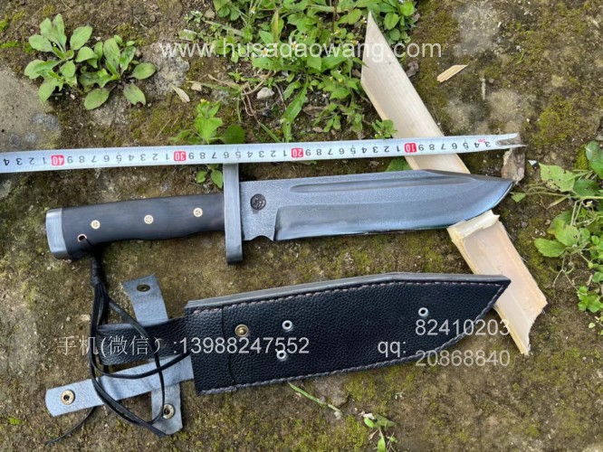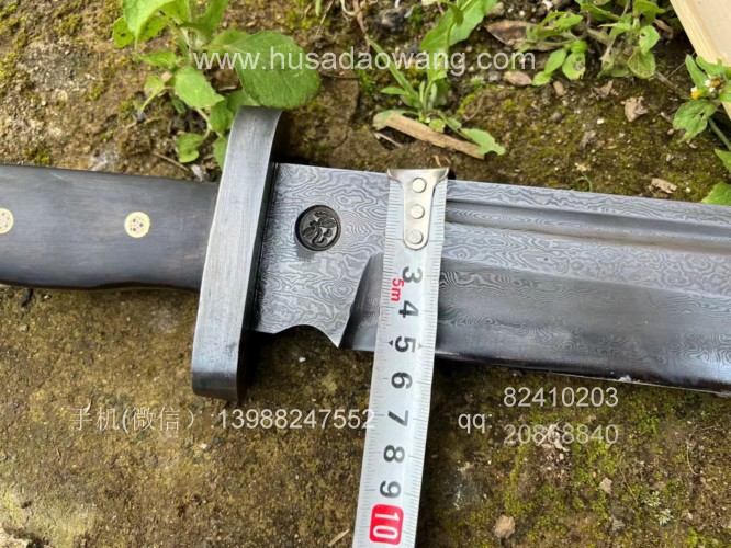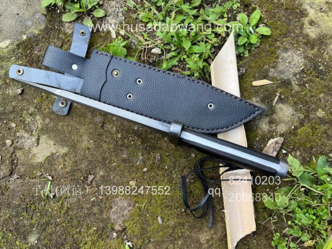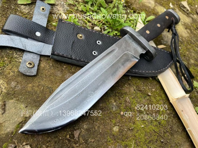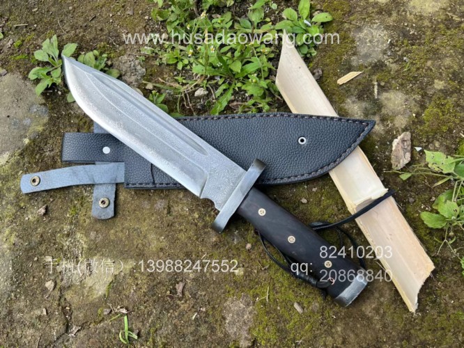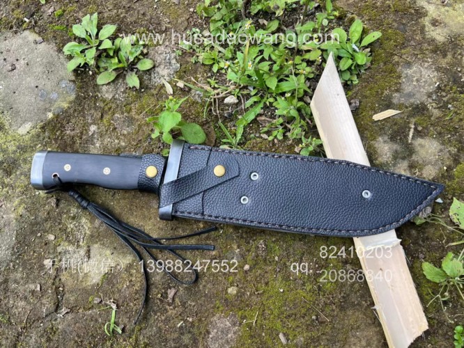 商品名称:户撒阿昌刀王猛男大猎刀 商品规格:刃长25厘米左右 全长41厘米左右 厚度1厘米左右 商品简介:这是户撒锻打工艺下一把非常厚实的大猎刀,采用特硬花纹钢一体龙骨锻打刀条,刀身非常厚实,厚度达到1厘米左右,户外带着它安全感爆棚,感觉能应付各种突发情况!此刀筋骨强悍,性能极佳,铁血壮汉专用! 户撒刀联系微信:13988247552