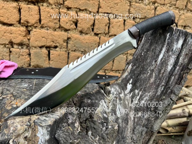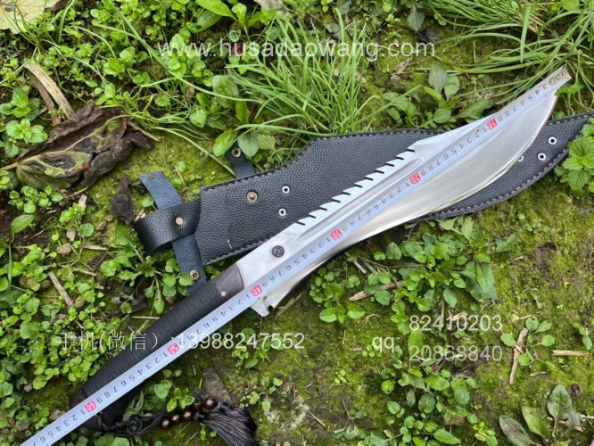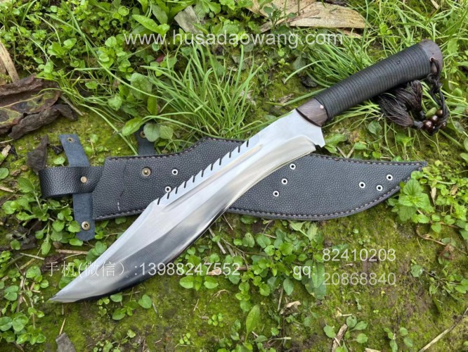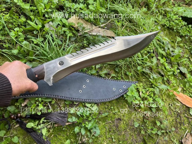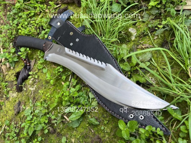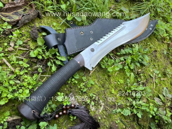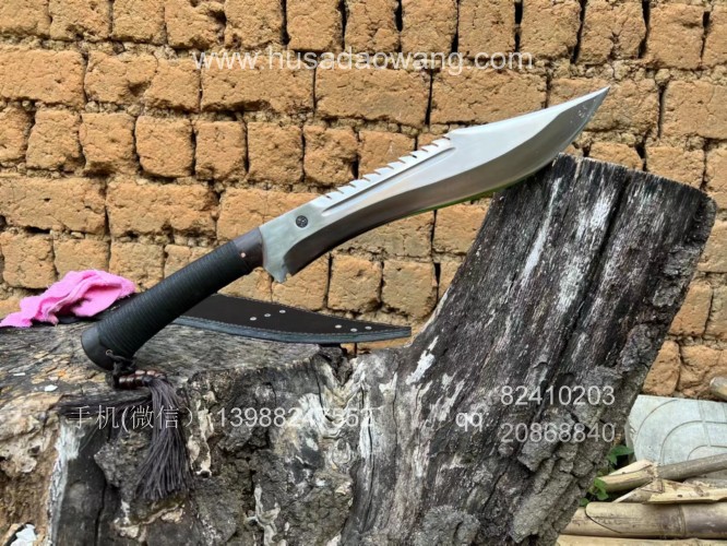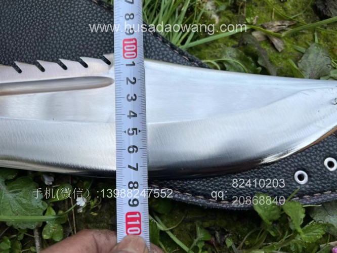 商品名称:户撒刀王(阿昌刀)虎鲨全龙骨大猎刀 商品规格:刃长40厘米左右 全长61厘米左右 厚度8毫米左右 商品简介:此刀采用户撒优质红钢全手工锻造,一体龙骨设计结实耐用,刀型极具震撼力,重心靠前劈砍力度极大,手柄精缠刀绳,防滑手感出众,户外开山一刀在手峥嵘尽显! 户撒刀联系微信:13988247552