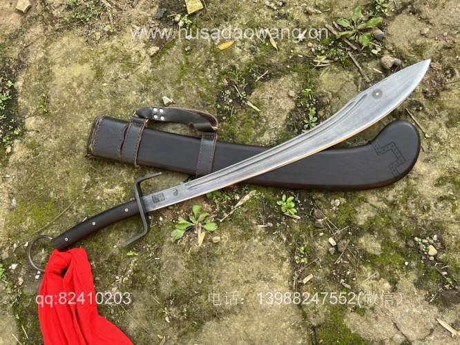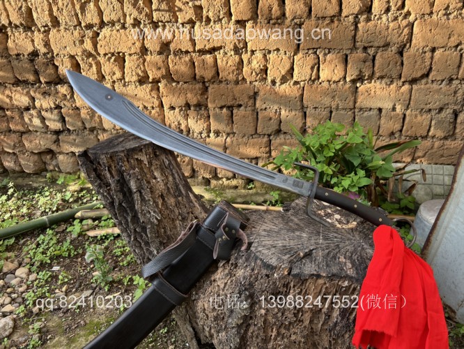 商品名称:户撒刀王(阿昌刀)极品一体龙骨护卫刀 商品规格:刃长72厘米左右 全长102厘米左右 商品简介:百炼钢一体全龙骨锻造刀身,传统配方淬火而成,性能极佳,所有尺寸和宽窄都经过客户数月精心推敲设计配重手感一流!黑檀木刀鞘采用素装不带加固金属配饰,在保持同样强度下更加不容易制作,设计极为合理的一把传世宝刀! VX:13988247552