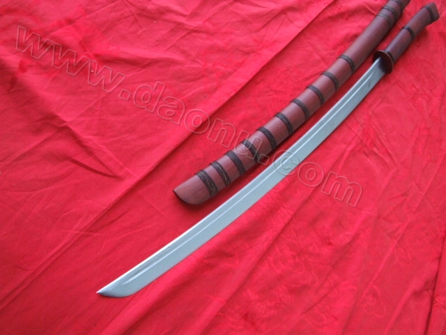 产品介绍: 此刀由户撒名匠全手工打制的极品马刀,刀身采用汽车弹簧钢板手工锻打淬火,刀身精雕龙凤等花纹,精铜缅甸紫檀木刀装,可过竹削铁!收藏极品!