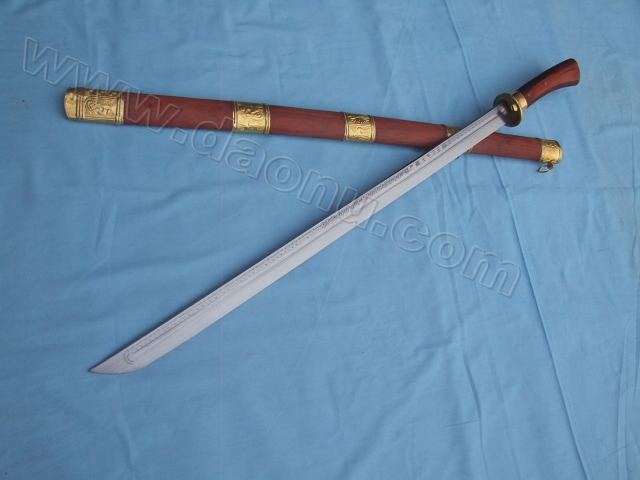产品介绍: 此刀由户撒名匠全手工打制的精品马刀,刀身采用汽车弹簧钢板手工锻打淬火,刀身精雕龙凤等花纹,精铜红木刀装,可过竹削铁!收藏极品!