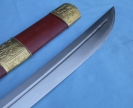 产品介绍: 此刀是户撒名匠全手工打制的珍藏版紫檀精铜装极品马刀,刀身采用汽车弹簧钢板手工锻打淬火,刀身精雕龙凤等花纹,精铜红木刀装,做工精良,刀的钢火一流!刀鞘刀把为存世稀少的缅甸紫檀木.镶饰精美纯铜装,独具一格的刀款华贵古朴大方,可过竹削铁,存世只此一把,极其收藏价值!!