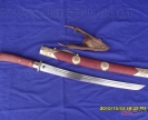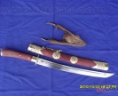 产品介绍: 此刀为户撒刀王项老赛妹夫线乔发亲手精心打制而成,采用汽车弹簧减震板,(刀鞘刀把都采用优质缅甸红木加铜制作);尺寸全长在58CM至65CM间;一面一道血槽,楠木刀壳,可斩角铁钢筋,性能卓绝!此刀为客户要求,根据本站两把刀的优点结合而成,质量极好,具有很高的收藏价值。
