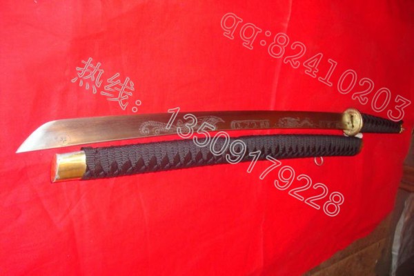 产品介绍: 此刀由户撒名匠全手工打制的精品皮壳扎带马刀,刀身采用汽车弹簧钢板手工锻打淬火,刀身精雕龙凤等花纹,刀装为皮壳扎带民族风格,刀民族风格浓郁,刀口锋利坚硬,过竹砍树实用佳品!