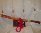 产品介绍: 此刀为客户特殊定制的高档镶丝酸枝木斩马刀(也称高锰碳钢)经户撒名匠线乔发精选优质弹簧钢,精心打制而成,刀身经过反复锻打,刃口进行多次复合淬火,这把极品斩马刀诞生了,此刀口做工细腻,亮光闪闪,可轻松斩断钢筋,刀身雕工细腻如丝,精雕龙凤栩栩如生,宝刀出鞘威势如虹!这把刀装为缅甸精品酸枝木(红木中最好的一种木料,油性大,分量重,在北方干旱情况下不开裂,本站极品刀剑都推荐此种木料)刀鞘包铜并精工镶嵌铜丝而成,付款后立即排队订制,机不可失!