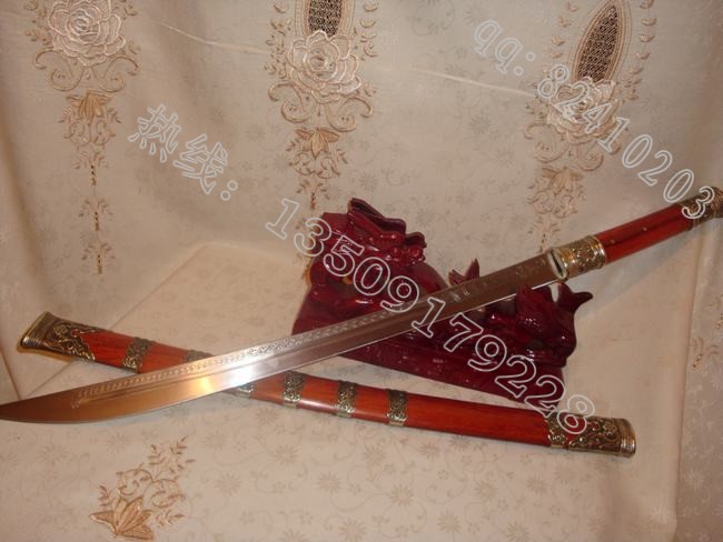 户撒刀介绍: 此刀为极收藏苗刀系列,经户撒名匠线乔发精选优质弹簧钢(也称高锰碳钢),精心打制而成,刀身反复锻打,刃口数次复合淬火,这把极品收藏性苗刀问世,此刀口做工细腻,线条流畅,可砍铁不伤,如果精磨可锋利刮毛,这把刀装为缅甸精品酸枝木(红木中最好的一种木料,油性大,分量重,在北方干旱情况下不开裂,本站极品刀剑都推荐此种木料)此刀刀装也是一个亮点,整体包优质缅银,刀装师傅也是户撒最好的师傅,配合名匠乔发的高超手艺,整刀更显贵族气息和王者风范。收藏极品,不可多得。此刀已售,开始预订。