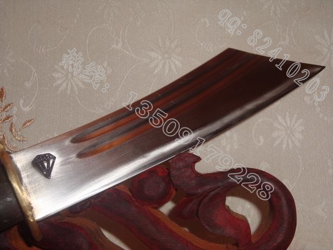 户撒刀(阿昌刀)说明:户撒刀(阿昌刀)全手工打制,韧性和硬度达到高度统一,刀采用局部淬火,刃口坚硬刀背稍软,以保证刀在受大力冲击情况下避免断裂,具体手工刀和机制刀的区别大家可参看本网站宝刀资讯栏目了解。手工产品把把略有不同,所以大家看到商品图片时如需订做,所得产品会略有差别(例如雕花、长度或规格等)当然大体不会改变,每把刀都是独一无二的,每把刀都倾注了刀匠独特的审美观和灵魂,这也正是手工刀魅力所在。