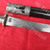 产品介绍: 此刀是缅甸和泰国客商专门定制的高档皇家护卫刀具,经户撒名匠线乔发采用传统户撒的锻打工艺精选优质高锰碳钢精心打制而成,刀身经过不断实践反复锻打,刃口数次特殊方法淬火,刃口硬度极高,此刀口做工细腻,线条流畅,刀身精雕双龙,这把刀装为极品乌木制作,外包精包缅银,刀装师傅也采用户撒最好的师傅,使整刀显王者风范!收藏极品,不可多得。购买方法:找到喜欢的作品,请联系客服进行购买,qq:82410203 手机:13988247552 13509179228 旺旺:照雪玉麒麟 ,货款支付方式:新客户推荐淘宝链接支付宝方式,绝对保障客户的利益;老客户可采取银行付款方式(方便我们做银行转账,这是对我们的有力支持,我们对这样可顾客表示感谢)