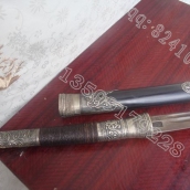 产品介绍: 此刀是采用缅甸皇家护卫刀具外形,经户撒名匠黎有兴采用传统户撒的锻打工艺精选优质百炼花纹钢纯手工反复锻打而成,刀身经过多次人工锻打,刃口数次特殊方法淬火,使得刃口硬度高,刀背硬度相对较低,刚柔相济。此刀口做工细腻,线条流畅,刀身花纹富有变化,这把刀装为极品乌木制作,外包精包缅银,刀柄也采用古朴精致的缅银雕刻,刀装师傅也采用户撒最好的师傅,使整刀显王者风范!泰国皇室专用,收藏极品,不可多得。购买方法:找到喜欢的作品,请联系客服进行购买,qq:82410203 手机:13988247552 13509179228 旺旺:照雪玉麒麟 ,货款支付方式:新客户推荐淘宝链接支付宝方式,绝对保障客户的利益;老客户可采取银行付款方式(方便我们做银行转账,这是对我们的有力支持,我们对这样可顾客表示感谢)