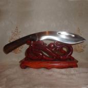 户撒刀(阿昌刀)说明:户撒刀(阿昌刀)全手工打制,韧性和硬度达到高度统一,刀采用局部淬火,刃口坚硬刀背稍软,以保证刀在受大力冲击情况下避免断裂,具体手工刀和机制刀的区别大家可参看本网站宝刀资讯栏目了解。手工产品把把略有不同,所以大家看到商品图片时如需订做,所得产品会略有差别(例如雕花、长度或规格等)当然大体不会改变,每把刀都是独一无二的,每把刀都倾注了刀匠独特的审美观和灵魂,这也正是手工刀魅力所在。