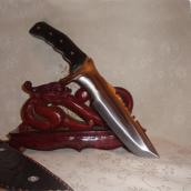 户撒刀(阿昌刀)说明:户撒刀(阿昌刀)全手工打制,韧性和硬度达到高度统一,刀采用局部淬火,刃口坚硬刀背稍软,以保证刀在受大力冲击情况下避免断裂,具体手工刀和机制刀的区别大家可参看本网站宝刀资讯栏目了解。手工产品把把略有不同,所以大家看到商品图片时如需订做,所得产品会略有差别(例如雕花、长度或规格等)当然大体不会改变,每把刀都是独一无二的,每把刀都倾注了刀匠独特的审美观和灵魂,这也正是手工刀魅力所在。