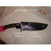 户撒刀介绍: 此刀为阿昌族优秀刀匠全手工精心打制,刀条采用优质进口高碳锰钢,传统户撒手工锻打结合现代实用刀型外观,千锤百炼后秘方淬火热处理而成,刀身精心设计,刀刃流畅,刀身锯齿状外形为全手工剪制,非常费时费力,刀柄为纯手工制作的珍惜黑檀木刀柄,手感舒适耐用。刀鞘纯牛皮内垫防锈纸板。此刀刃口可非常锋利甚至可刮毛,户外收藏俱佳!请大家抓紧时间定制。