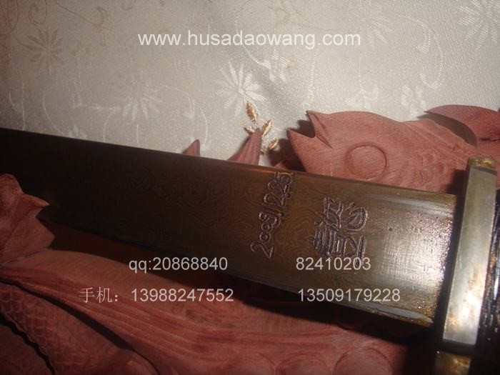产品名称: 户撒刀王(阿昌刀)极品百炼花纹钢唐刀(线乔发)此刀为户撒刀名匠线乔发精工制作!