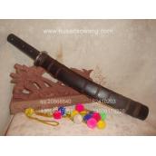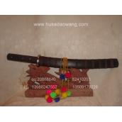 宝刀介绍: 此刀为户撒当今最顶级钢材打制的极品小苗刀,经户撒优秀刀匠线兴过(打刀工艺极其高超,乔发也伸大拇指赞赏,尤其对我们独家高档进口钢材的锻造拿捏少有的到位)采用本站独家进口的特殊钢材精心反复锻打而成,这种钢材锻打难度极高,经过匠人反复摸索,反复锻打,刃口数次特殊方法淬火,小苗刀问世,此刀做工细腻,线条流畅之极,刀身采用整个一体的全龙骨设计,其结实耐用程度更为提高!此刀刃口硬度极高,可在保持比较锋利的情况下砍铁不伤,刀身防锈能力也大大超过户撒当地的弹簧钢系列,因此具有更好的收藏价值。这把刀装为高档进口黑檀木,纹理细密结实耐用,刀柄刀鞘整体包扎严密扎实,手感一流。收藏极品,不可多得。
