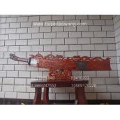 产品介绍: 此镇宅平头刀为当今户撒最厚重最大的一款精品,刀身采用军用高碳锰钢,有户撒名刀匠杨茂芳经传统锻打并配以民族雕花工艺,刀条反复锻打秘方淬火,刀身传统平头刀款型,刀身硕大厚重,威猛刚劲。此刀粗锋砍断钢筋,细锋可轻松过竹,刀柄刀鞘为精选天然红酸枝,刀鞘手工雕刻,惟妙惟肖,经典民族收藏。此刀为镇宅刀,可作为公司礼品赠送,也可家庭镇宅之物,请大家抓紧时机定制收藏。如需带底座价格为2600元