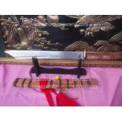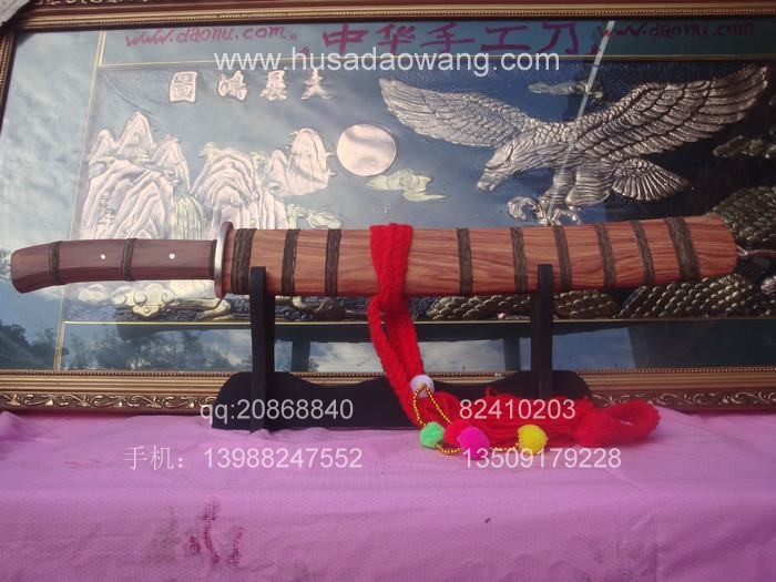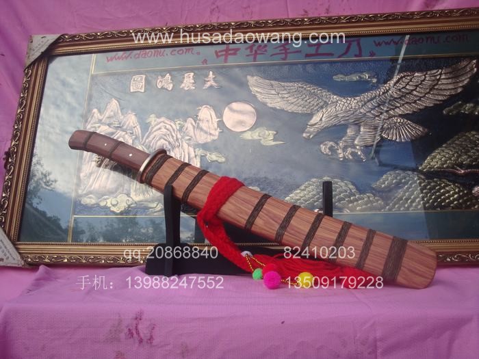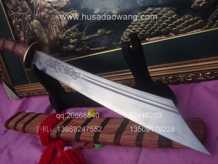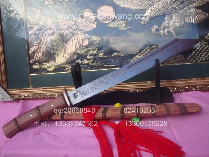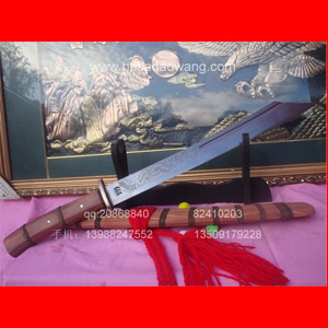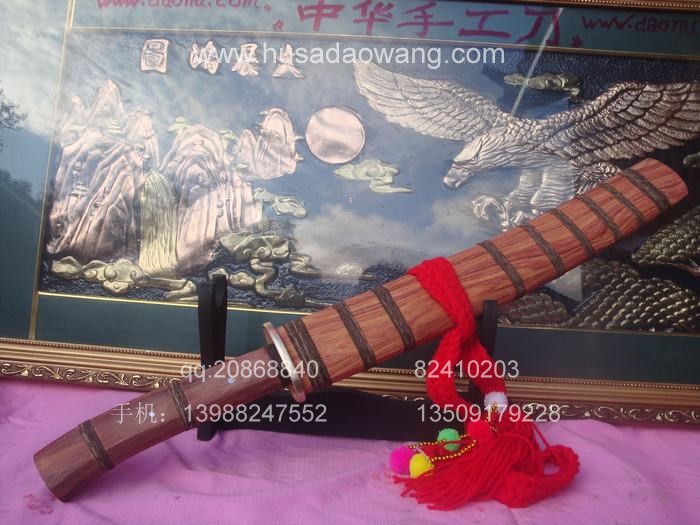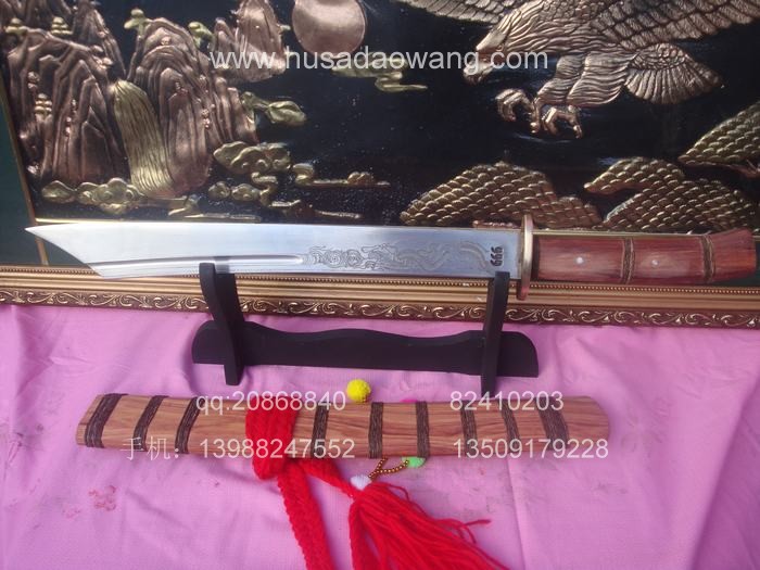 商品简介: 此刀由户撒优秀刀匠全手工精心锻打的收藏级增强型小斩马刀,刀身采用军用汽车弹簧钢板炭炉下纯手工反复锻打,并配方淬火工艺,刀身手工雕琢有精美的游龙等纹饰.做工精良,刀的钢火一流!粗锋可砍断钢筋,细锋锋利过竹,此刀是原版的加宽加强版本,挥砍更加有力,很适合练武之人演练。刀鞘刀柄为存世稀少的缅甸名贵红酸枝木.是市场上难得一见宽鞘极品小斩马刀,非常值得收藏!