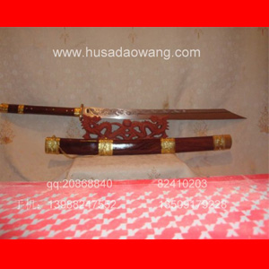 产品介绍: 此加强版长款全龙骨斩马刀为户撒刀迪派传人线乔发全手工精心打制,刀身采用优质军用汽车弹簧板或进口车弹簧甲板,制作工艺为户撒传统全手工锻打并配合线乔发亲自民族雕花工艺,刀身经反复锻打后配方局部淬火热处理而成,此刀为加大斩马刀款型,整体大气豪放,刀刃最宽处5.5厘米,刀柄采用结实耐用的全龙骨处理方法,不会因为大力劈砍而使刀出现任何问题,粗锋可砍钢筋不伤刃口,细锋可轻松过碗口粗的竹子,刀柄刀鞘为进口上等乌酸枝木,经典民族收藏。请大家抓紧时机订做。