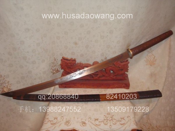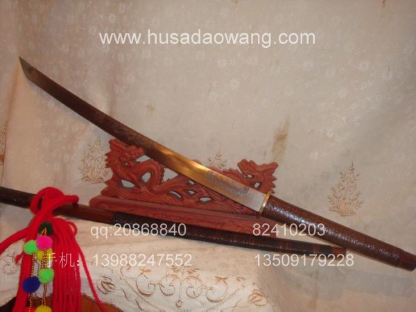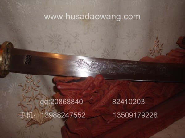作品介绍: 此传统风格的精品长马刀为被列为非物质文化的户撒刀锻打工艺迪派传人名匠线乔发全手工精心锻打而成,刀身采用优质军用汽车弹簧板经炭火煅烧,手工精锻而成,刀身手工民族雕花工艺,刀身经千锤百炼后油淬水淬复杂热处理而成,此刀身为传统民族马刀款型,刀刃流畅优美,配重到位,刀身线乔发亲自雕龙,神气活现,刀柄缠满综民族风味独特,粗锋可砍铁不伤,细锋轻松过竹,刀柄刀鞘为珍惜金丝楠木,刀鞘精缠综丝,民族做法。经典民族收藏。请大家抓紧时机选购收藏。