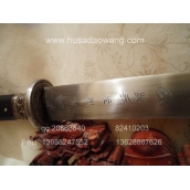 介绍:此作品是户撒刀第一名匠线乔发全手工打制,宝剑剑条为精选进口弹簧钢,由名匠采用传统户撒锻打工艺纯手工千锤百炼锻制而成,剑条淬火为古法配方完成,刃口经过刀匠数十年打刀经验的洗礼,性能卓越,刚柔相济,粗锋可砍铁不伤,细锋可轻松过竹。此剑刃宽达到4.8厘米左右,手感沉重,因而威力强大,具有宝剑天然的君子风范但又不失霸王之气。剑鞘和剑柄精选正宗印度黑檀木,装饰为手工包缅银装饰。此剑把气如虹放在家里具有强烈的辟邪作用,欢迎刀友和收藏爱好者前来定制。