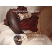 刃材:精选军用弹簧钢(也称高弹锰钢和锰65) 刀鞘和刀柄:刀柄为正宗非洲黑檀木,刀鞘手工满包缅银 刃口坚硬可扎铁板(也可磨的锋利刮毛) 名匠线乔发精铸