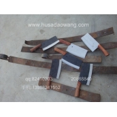 4、刀条硬度及性能不同:户撒刀(阿昌刀)因为采用了局部淬火工艺,且材料不一,所以,刀与刀的硬度是不同的,就是同一把刀子,刀背刀口、刀根刀尖等硬度也不一样,一般说来刀条根部因很少使用,淬火很浅,刀尖细小部位从实用性来讲为了防止过硬而断裂,所以刀尖也很少淬火,最终讲的是刚柔相济;而机制刀具,硬度单一,刃口硬度经常不能达标,一般销售时只标识一个硬度,如57;