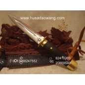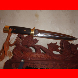 产品介绍: 此刀有户撒优秀刀匠全手工精心打制而成,原型根据我国84式军用侦查匕首实用设计,刀条精选优质军用弹簧钢,采用传统户撒刀锻打技术反复锻打后配方淬火热处理而成,刀身设计经典实用,双面开刃,刀刃流畅犀利,精磨后可轻松刮毛。刀柄为纯手工制作的精品黑檀木刀柄,配合手型手工制作,手感舒适耐用。刀鞘纯牛皮内垫防锈纸板。此刀属于实用现役军刀刀型,刃口锋利,刀尖犀利,具有非常强的穿刺能力。防身车载不二选择。
