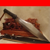 商品介绍: 此刀是户撒刀第一名匠线乔发全手工打制的松田菊男格斗刀,刀条款式由松田菊男(日本的制刀和研磨大师他制作和设计的每一款刀被全世界刀迷疯狂收藏)的刀具爱好者提供,此刀的刀型设计同时具备很好的穿刺和劈砍功能,也是最好用的实用刀型,此类刀型具有配重合理劈砍有力的特点,刀身采用军用汽车弹簧钢板(高弹锰钢)传统户撒锻打工艺锻打淬火,淬火工艺为秘方混合淬火方式,边打边淬。刀鞘为实用牛皮刀鞘,刀柄为全龙骨设计,使得此刀结构更加结实耐用!此刀打造强度可砍铁过竹坚硬锋利。是格斗和户外防身的利器,大家抓紧时间定制。