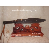 撒刀为纯手工刀具,各具特色,把把不同,以下将户撒刀(阿昌刀)与国内部分地区的机制刀进行比较说明: 1、刀身用料不同:户撒刀(阿昌刀)主要采用的废旧汽车弹簧钢、高碳钢、军用合金钢等,品种多样;目前本站(www.husadaowang.com)采用的多为精选优质弹簧钢、优质轴承钢、高档进口工具钢(性能防锈力都大为提高)而机制刀具,采用的材料较为单一,不讲求研发和创新。 2、锻打工艺不同:户撒刀(阿昌刀)采用的是双人大小双锤锻打,有团打、折打、夹钢、混打等;而机制刀,一般直接采用钢板材磨制就了事了,也有极少数采用空气锤锻打; 3、热处理工艺不同:户撒刀(阿昌刀)采用的是结合本地水质,添加特殊物质传统秘方局部或全部淬火工艺,也有有油淬、水淬和混合淬等;而机制刀具,一般直接采用已经热处理的钢板,不需要单独的淬火; 4、刀条硬度及性能不同:户撒刀(阿昌刀)因为采用了局部淬火工艺,且材料不一,所以,刀与刀的硬度是不同的,就是同一把刀子,刀背刀口、刀根刀尖等硬度也不一样,一般说来刀条根部因很少使用,淬火很浅,刀尖细小部位从实用性来讲为了防止过硬而断裂,所以刀尖也很少淬火,最终讲的是刚柔相济;而机制刀具,硬度单一,刃口硬度经常不能达标,一般销售时只标识一个硬度,如57; 5、刀口开锋工艺不同:户撒刀(阿昌刀)采用的人工砂轮机或天然磨石开形、手工磨制为主;而机制刀,则是用现代设备车洗出来的刀口; 7、产量不同:户撒刀(阿昌刀)手工制作,同一时间段内产量有限;而机制刀,产量多多; 8、文化底蕴不同:阿昌刀以“锋利耐用”名列中国三大少数民族刀具之首,也是中国仅存的全手工实战军刀,经过600多年的持续发展和积累,刀形刀把刀壳等均与众不同;而机制刀,多为相互仿制,或仿制国外刀具厂的刀形(有的只略作改动)或仿制古刀具,谈不上自己的特色。 户撒刀的保养知识: 1.刀具使用后,用火将刀条烘干,然后用纯棉布细擦; 2、毛刷上油(建议采用枪油或进口发动机油),刀把里也要滴上一些; 4、刀口有损,注意顺着原样细磨(磨刀形,采用合成磨石;磨刀口,一般采用天然细磨石); 5、建议刀具最好不要开锋,开了锋易伤人或自己。 户撒刀(阿昌刀)说明:户撒刀(阿昌刀)全手工打制,韧性和硬度达到高度统一,刀采用局部淬火,刃口坚硬刀背稍软,以保证刀在受大力冲击情况下避免断裂,具体手工刀和机制刀的区别大家可参看本网站宝刀资讯栏目了解。手工产品把把略有不同,所以大家看到商品图片时如需订做,所得产品会略有差别(例如雕花、长度或规格等)当然大体不会改变,每把刀都是独一无二的,每把刀都倾注了刀匠独特的审美观和灵魂,这也正是手工刀魅力所在。 产品来样定做:本站户撒刀(阿昌刀)完全可以按客户要求定做产品尺寸(刀条样式,不包括刀装,刀装暂时还采用户撒当地风格),并可根据客户要求来选择本站的签约刀匠,项老赛 线乔发 黎有兴 土司刀王 李德永 等户撒名匠,一经选择完全按客户指定刀匠来加工,如有假冒,假一赔十。 质量承诺:本站所有产品均系正品,而且是团队经多次和刀匠协商,产品为普通产品加强版,需优于市场同价格产品,专人负责验收。其主旨是为广大收藏爱好者提供真正的民族手工特色精品。产品品牌假一罚十。如在运输途中万一出现意外,导致产品出现部分损坏,请朋友们立即拍照,我们负责免费修复和调换。
