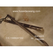户撒刀特点: 1、刀身用料不同:户撒刀(阿昌刀)主要采用的废旧汽车弹簧钢、高碳钢、军用合金钢等,品种多样;目前本站(www.husadaowang.com)采用的多为精选优质弹簧钢、优质轴承钢、高档进口工具钢(性能防锈力都大为提高)而机制刀具,采用的材料较为单一,不讲求研发和创新。 2、锻打工艺不同:户撒刀(阿昌刀)采用的是双人大小双锤锻打,有团打、折打、夹钢、混打等;而机制刀,一般直接采用钢板材磨制就了事了,也有极少数采用空气锤锻打; 3、热处理工艺不同:户撒刀(阿昌刀)采用的是结合本地水质,添加特殊物质传统秘方局部或全部淬火工艺,也有有油淬、水淬和混合淬等;而机制刀具,一般直接采用已经热处理的钢板,不需要单独的淬火; 4、刀条硬度及性能不同:户撒刀(阿昌刀)因为采用了局部淬火工艺,且材料不一,所以,刀与刀的硬度是不同的,就是同一把刀子,刀背刀口、刀根刀尖等硬度也不一样,一般说来刀条根部因很少使用,淬火很浅,刀尖细小部位从实用性来讲为了防止过硬而断裂,所以刀尖也很少淬火,最终讲的是刚柔相济;而机制刀具,硬度单一,刃口硬度经常不能达标,一般销售时只标识一个硬度,如57; 5、刀口开锋工艺不同:户撒刀(阿昌刀)采用的人工砂轮机或天然磨石开形、手工磨制为主;而机制刀,则是用现代设备车洗出来的刀口; 7、产量不同:户撒刀(阿昌刀)手工制作,同一时间段内产量有限;而机制刀,产量多多; 8、文化底蕴不同:阿昌刀以“锋利耐用”名列中国三大少数民族刀具之首,也是中国仅存的全手工实战军刀,经过600多年的持续发展和积累,刀形刀把刀壳等均与众不同;而机制刀,多为相互仿制,或仿制国外刀具厂的刀形(有的只略作改动)或仿制古刀具,谈不上自己的特色。 户撒刀的保养知识: 1.刀具使用后,用火将刀条烘干,然后用纯棉布细擦; 2、毛刷上油(建议采用枪油或进口发动机油),刀把里也要滴上一些; 4、刀口有损,注意顺着原样细磨(磨刀形,采用合成磨石;磨刀口,一般采用天然细磨石); 5、建议刀具最好不要开锋,开了锋易伤人或自己。 户撒刀(阿昌刀)说明:户撒刀(阿昌刀)全手工打制,韧性和硬度达到高度统一,刀采用局部淬火,刃口坚硬刀背稍软,以保证刀在受大力冲击情况下避免断裂,具体手工刀和机制刀的区别大家可参看本网站宝刀资讯栏目了解。手工产品把把略有不同,所以大家看到商品图片时如需订做,所得产品会略有差别(例如雕花、长度或规格等)当然大体不会改变,每把刀都是独一无二的,每把刀都倾注了刀匠独特的审美观和灵魂,这也正是手工刀魅力所在。 产品来样定做:本站户撒刀(阿昌刀)完全可以按客户要求定做产品尺寸(刀条样式,不包括刀装,刀装暂时还采用户撒当地风格),并可根据客户要求来选择本站的签约刀匠,项老赛 线乔发 黎有兴 土司刀王 李德永 等户撒名匠,一经选择完全按客户指定刀匠来加工,如有假冒,假一赔十。 质量承诺:本站所有产品均系正品,而且是团队经多次和刀匠协商,产品为普通产品加强版,需优于市场同价格产品,专人负责验收。其主旨是为广大收藏爱好者提供真正的民族手工特色精品。产品品牌假一罚十。如在运输途中万一出现意外,导致产品出现部分损坏,请朋友们立即拍照,我们负责免费修复和调换。