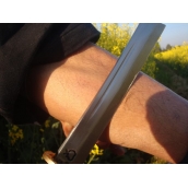 商品描述:此刀为户撒优秀刀匠精选进口车弹簧板全手工锻打而成。为当地最具民族风格和传统制作方法的迷你小平头刀款式,刀条经过全手工锻打后经传统配方热处理,使刀条刚柔相济,刀条刃口坚硬锋利,锋利可轻松刮汗毛,刀柄和刀鞘采用最为当地最为传统的楠木鞘缠棕制作式,民族特色浓郁。在户撒当地,大家都喜欢这种平头刀款型,实用装饰都非常适合,户外携带便携实用,节日无论男女老少都喜欢佩戴。