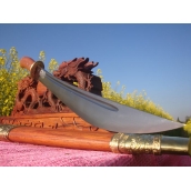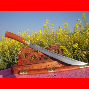 商品简介:此刀为户撒阿昌族名匠杨茂芳全手工精锻而成,此刀刀型平整流畅,配重手感极好,长短适合方便携带,刀型为民族经典苗刀款式,材质采用性质极为适合锻打的军用弹簧钢全手工千锤百炼而成,配方淬火,使得刀条刚柔相济,刀刃硬刀身软,刀刃粗锋砍铁 细锋刮毛,性能手感极佳,刀柄和刀鞘精选缅甸红酸枝外包铜皮手工制作,红酸枝手感和防开裂性能出众,为众刀友所喜爱!此刀实用收藏皆可,大家勿失良机!