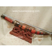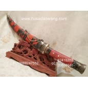 收藏要点:古老户撒传承锻打工艺、精选高碳锰钢(军用车弹簧板)、秘传水淬油淬热处理工艺、 缅甸红酸枝刀鞘刀柄、 外包缅银、古代军刀制作方式