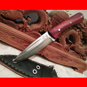 产品介绍: 此刀由户撒优秀刀匠纯手工制作的精品牛耳尖刀,刀身采用进口汽车弹簧钢板全手工反复精锻而成,刃口采用户撒传统配方淬火,刀刃硬,刀背软,刃口坚硬锋利,可轻松刮毛。刀型采用古代最为常用便携的牛耳尖刀款式,刀柄采为结实耐用的全龙骨设计,握感舒适,可扎可削,便携耐用!此刀刀鞘采用本站独家定制的双层纯牛皮,非常结实耐用。户外运动者必备短刀之一。
